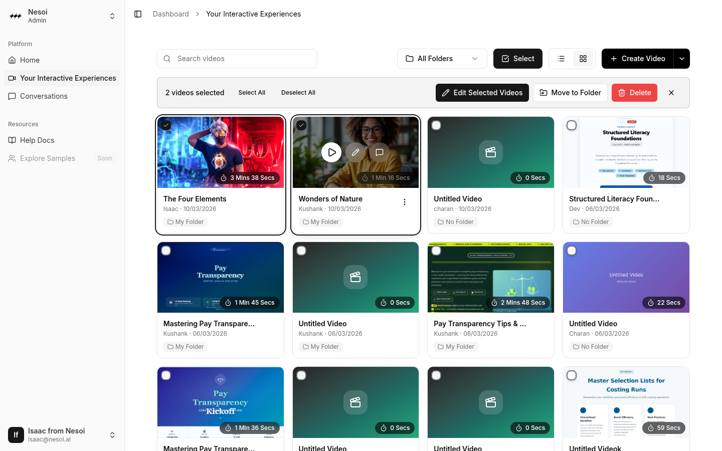 - Click on a video card (in select mode) to toggle its selection