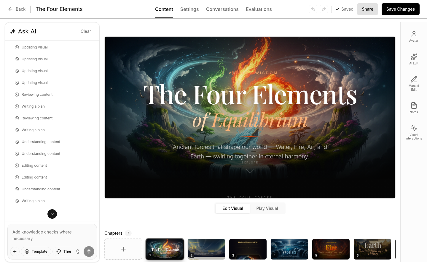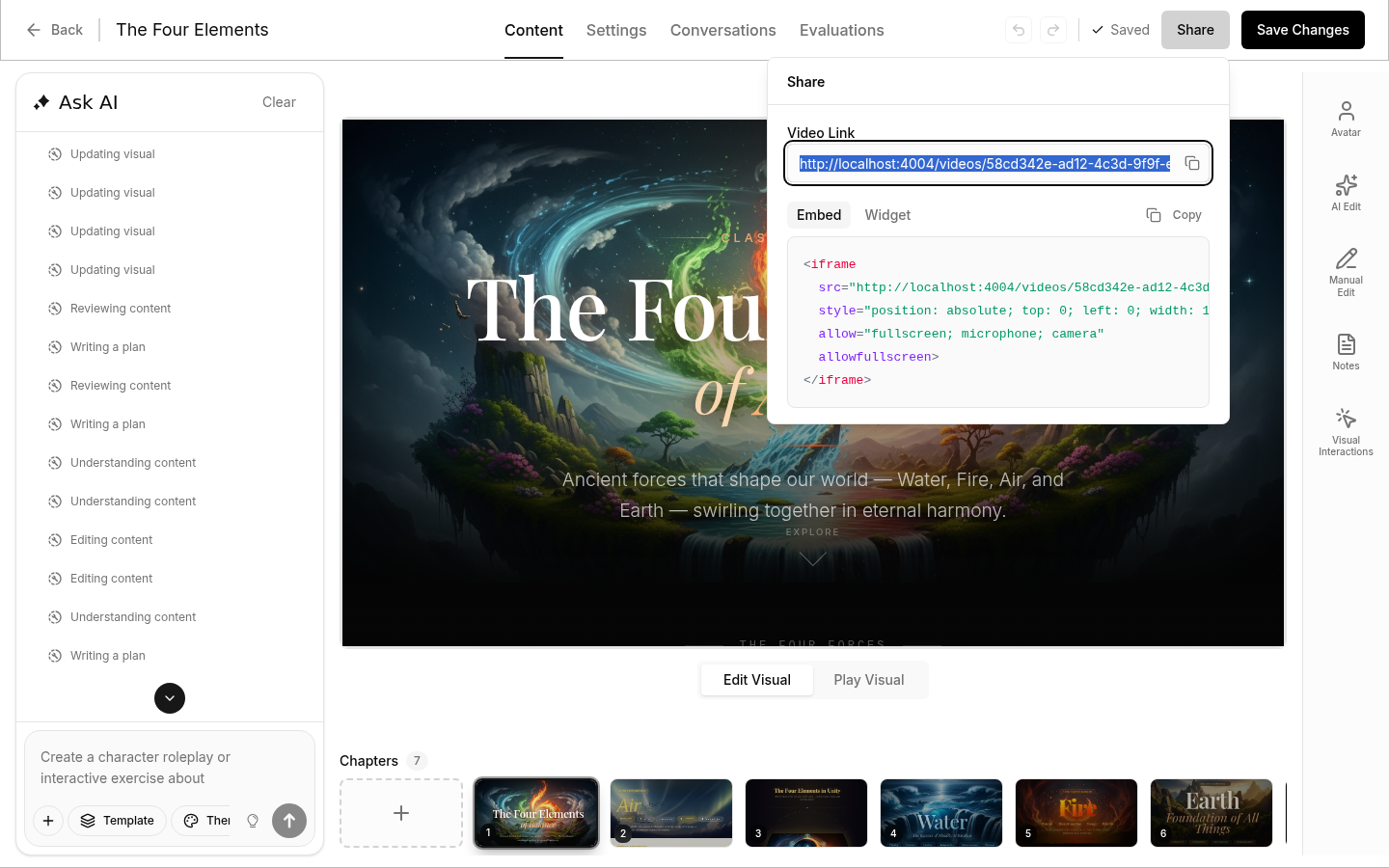 Chat with the AI assistant to make changes to your video. Ask it to: