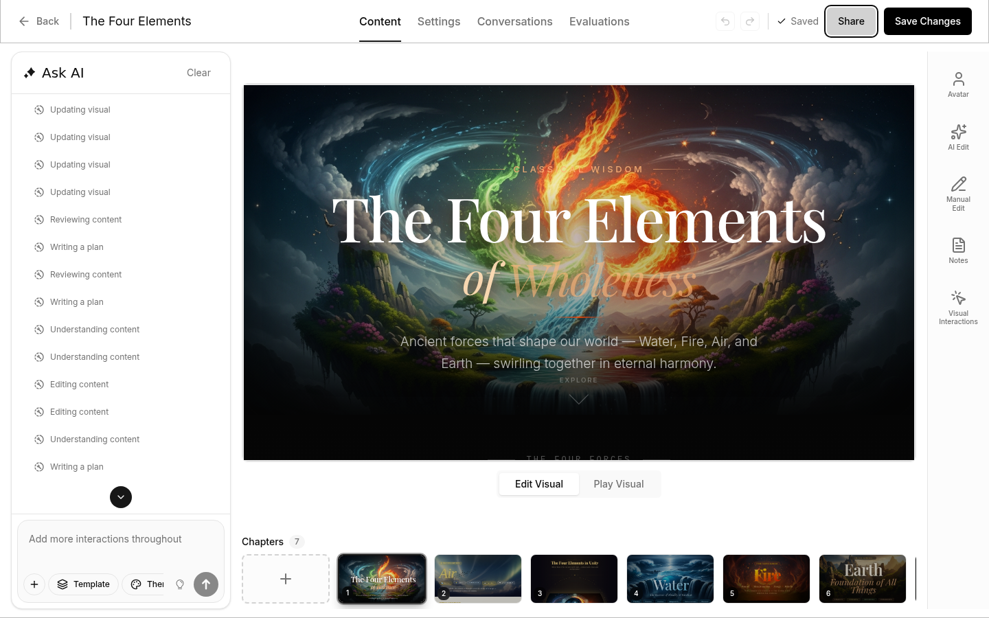 Think of chapters like slides in a presentation, but with richer interactivity and AI-powered narration.